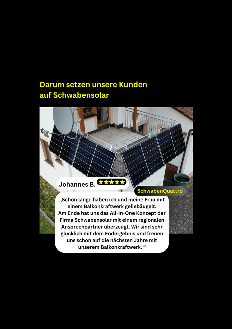 Unter anderem der Schwabensolar Anmeldeservice macht unser Balkonkraftwerk-Konzept einzigartig. Von unserem Sitz in Lauterstein aus, gehen wir gemeinsam mit unseren Kunden einen wichtigen Schritt in die Welt von morgen.