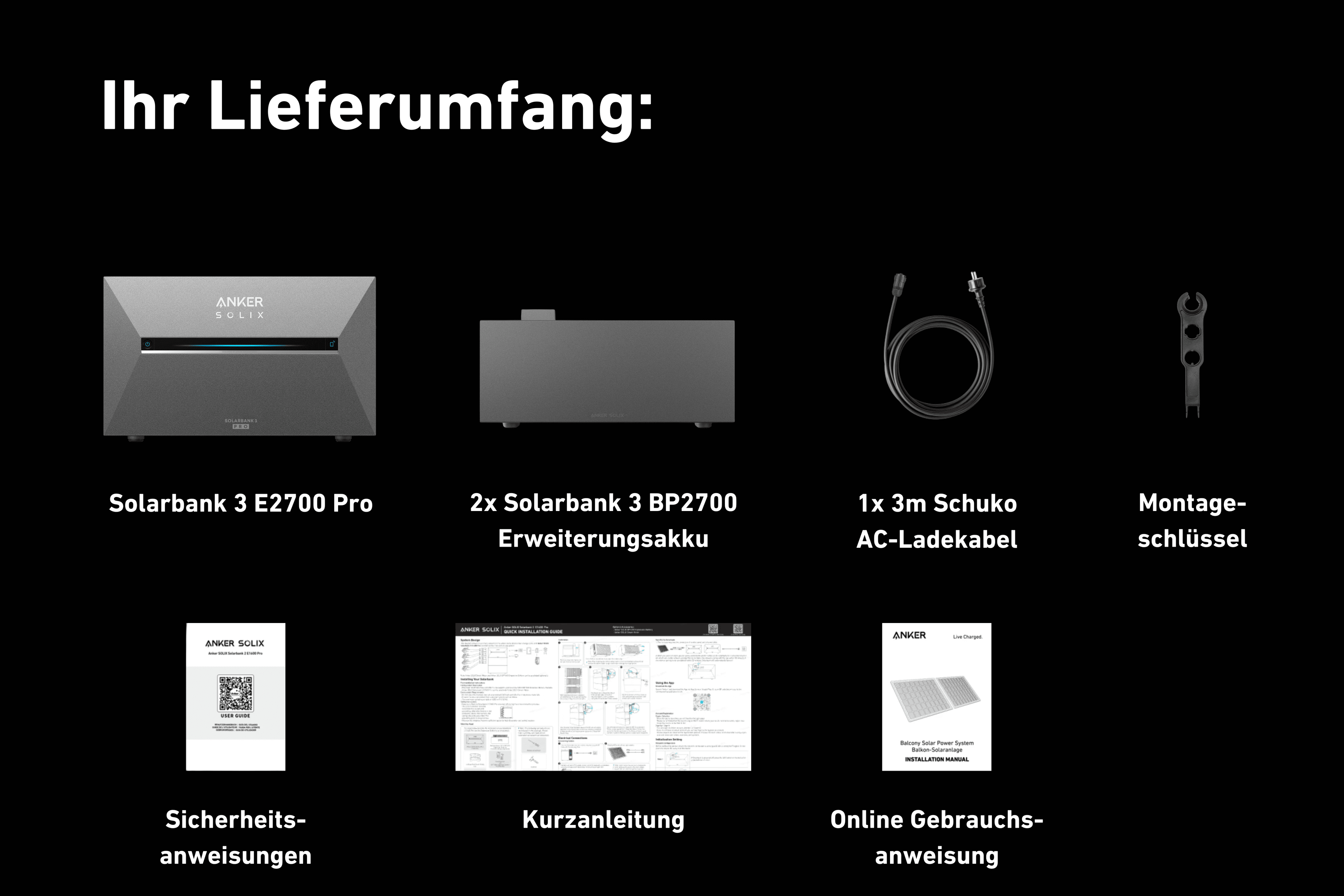 Anker SOLIX Solarbank 3 E2700 Pro + 2x BP2700 Erweiterungsbatterie 8,07 kWh