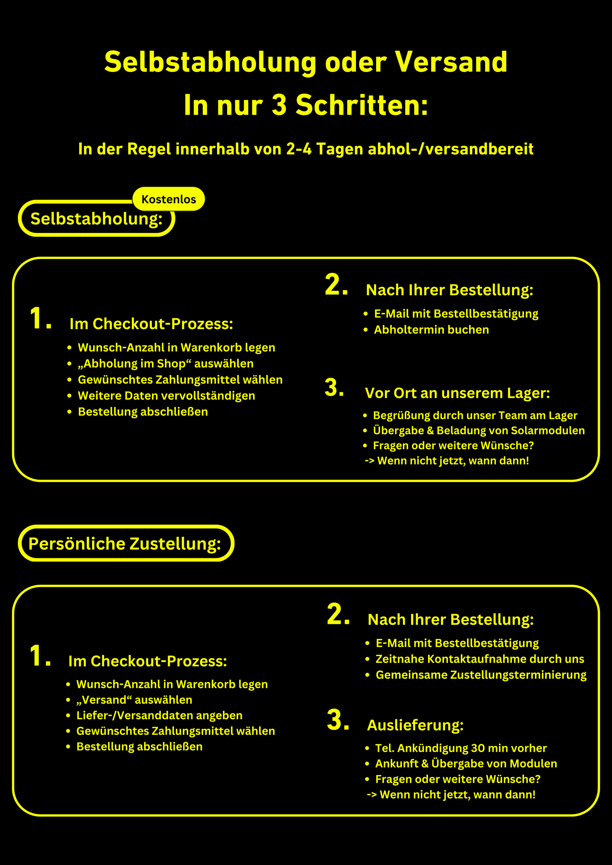 Optimal für jeden Bedarf – von großen Projekten bis zu kleineren Abnahmen: Ob Sie eine größere Menge an Solarmodulen benötigen oder lediglich ein paar Module für kleinere Projekte – wir bieten Ihnen stets sehr attraktive Preise, unabhängig von der Abnahmemenge. Somit können auch kleinere Projekte von Ihnen äußerst attraktiv umgesetzt werden.